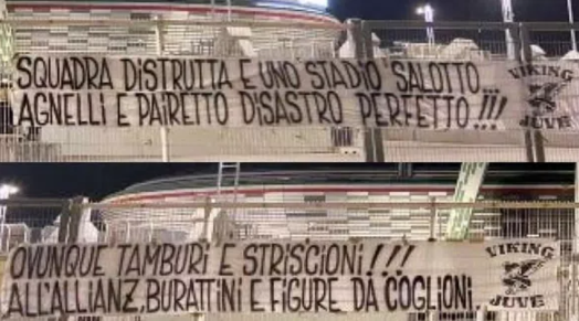 L’operato della società bianconera in questa sessione di mercato ha dato da discutere. I tifosi della Juventus non sono per niente soddisfatti e la partenza di Cristiano Ronaldo non ha fatto che peggiorare la situazione. Durissime le critiche alla Juventus da parte degli ultras. Ieri sera due striscioni sono apparsi all’esterno dell’Allianz Stadium di Torino, con la firma del gruppo storico ‘Vikings’. ‘Squadra distrutta e uno stadio salotto… Agnelli e Pairetto disastro perfetto’, recita il primo, che attacca l’operato del club nel mercato. Nel secondo, un riferimento al tifo organizzato: ‘Ovunque tamburi e striscioni!! All’Allianz burattini e figure da cogli..i’.